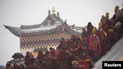 ༄༅།། དེང་སྐབས་རྒྱ་གཞུང་གིས་དབྱེ་བགོས་བྱས་པའི་བོད་ནང་གི་ཀན་སུའུ་ཞིང་ཆེན་གྱི་ཀན་ལྷོ་བོད་རིགས་རང་སྐྱོང་ཁུལ་ཞེས་པ་དེའི་ཁུལ་དཔོན་གྱིས་བོད་ཀྱི་དགོན་པ་ཁག་ལ་སུན་གཙེར་དང་དམ་དྲག འཇིགས་སྐུལ་བྱས་པའི་སྟབས་ཀྱིས་ཟླ་བ་སྔོན་མར་གཙོས་གྲོང་ཁྱེར་ཉེ་འཁྲིས་ཀྱི་ཁ་གྱའི་མཚམས་པ་གྲྭ་པ་ཞིག་གིས་༧གོང་ས་ཏཱ་ལའི་བླ་མ་མཆོག་གི་སྐུ་པར་མདུན་དུ་རང་སྲོག་བཅད་འདུག་ཅེས་མིང་དངོས་སུ་བརྗོད་འདོད་མེད་མཁན་གྱི་ས་གནས་བོད་པ་ཞིག་གིས་གནས་ཚུལ་མཁོ་སྤྲོད་བྱས་འདུག ཁོང་གིས་རྒྱ་གཞུང་གི་བསྐོ་བཞག་བྱས་པའི་ཁུལ་དཔོན་དེ་ཕྱི་ཟླ་༥་པའི་མགོ་སྟོད་དུ་ཀན་ལྷོ་ཁུལ་དང་གཙོས་གྲོང་ཁྱེར་གྱི་ཉེ་འཁོར་དུ་ཆགས་པའི་བོད་ཀྱི་དགོན་སྡེ་ཁག་ཏུ་ཡོང་སྟེ་དམ་དྲག་དང་སུན་གཙེར། ལྷག་པར་དུ་ཁ་གྱའི་གྲྭ་པ་ཞིག་མཚམས་ལ་བཞུགས་ཡོད་པའི་སྐབས་སུ་མཚམས་ཁང་ནང་དུ་བཙན་གྱིས་འཛུལ་ཏེ་མཚམས་པ་དེར་འཇིག་སྐུལ་བྱས་འདུག ཁོ་པས་ཀན་ལྷོ་ཁུལ་ཡོངས་རྫོགས་ངའི་དབང་འོག་དུ་ཡོད། ངས་ཁུལ་ཡོངས་ལ་དམ་དྲག་བྱེད་ཀྱི་ཡོད་ཅེས་མཚམས་པ་དེར་ཕོགས་ཐུག་ཆེན་པོ་བཏང་འདུག་ཅེས་འགྲེལ་བརྗོད་བྱས་འདུག