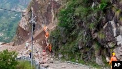 ༄༅།། དེང་སྐབས་ལྷོ་ཨེ་ཤི་ཡ་དང་ལྷོ་ཤར་ཨེ་ཤི་ཡའི་རྒྱལ་ཁབ་ཁག་ལ་ཆར་ཞོད་ཀྱི་དུས་སྐབས་ཚུགས། གཟའ་ལྷག་པའི་ཉིན་རྒྱ་གར་གྱི་ཧི་མ་ཅ་ལ་མངའ་སྡེའི་ཁུ་ནུ་རྫོང་གི་ས་གནས་ཤིག་ལ་རི་ཉིལ་ཏེ་ཕ་བོང་ལྷུང་ནས་ཉུང་མཐར་ཡང་མི་༡༣་ལ་སྲོག་སྐྱོན་དང་མི་༥༠་ཡས་མས་ཤིག་ས་འོག་ཏུ་མནན་ནས་རྙེད་ཀྱི་མེད་པའི་གནས་ཚུལ་ཐོན་འདུག དེ་ཡང་དབྱིན་ཇིའི་བྷི་བྷི་སི་གསར་འགྱུར་ལས་ཁང་དང་རྒྱ་གར་གྱི་ཊི་རི་བྷུན་གསར་ཤོག་སོགས་ལ་གནས་ཚུལ་ཐོན་པ་ལྟར་ན། རྒྱ་གར་གྱི་ཧི་མ་ཅལ་མངའ་སྡེའི་ཁུ་ནུ་རྫོང་དུ་རི་ཉིལ་བ་དང་རྦབ་རྡོ་སྒྲིལ་ནས་རྒྱ་ལམ་སྟེང་གི་སྤྱི་སྤྱོད་རླངས་འཁོར་དང་དོས་སྐྱེལ་རླངས་འཁོར་འགའ་ཞིག་ས་འོག་ཏུ་མནན། ཆར་ཞོད་དུས་སུ་ས་རུད་བརྒྱབ་པ་དང་རི་ངོས་ནས་རྦབ་རྡོ་སྒྲིལ་བ་སོགས་ཕ་བོང་ཆེན་པོ་རྣམས་ལྷུང་གི་ཡོད་པས་ཉེན་སྐྱོབ་ཀྱི་ལས་དོན་ཁག་ལ་འགོག་རྐྱེན་ཕྲད། ཉེ་བའི་ཟླ་ཤས་ཤིག་ནས་རྒྱ་གར་ལ་ཆར་ཞོད་དུས་སུ་རི་ཉིལ་བ་དང་རྦབ་རྡོ་སྒྲིལ་ནས་ཆག་སྒོ་ཆེན་པོ་ཞིག་འབྱུང་གི་ཡོད་པའི་གནས་ཚུལ་ཐོན། རྒྱ་གར་གྱི་དམག་དང་རྒྱལ་ཡོངས་ངལ་སེལ་དཔུང་སྡེའི་དམག་མི་བཅས་མི་༢༠༠་ལྷག་གིས་མཚན་མོར་འདམ་ཉོག་དང་ཆར་ཆུའི་ཁྲོད་དུ་ཉེན་སྐྱོབ་ལས་དོན་བསྒྲུབས། ཧིན་བོད་ས་མཚམས་ཉེན་རྟོག་པའི་སྒྲིག་འཛུགས་ཀྱི་བཀོད་འདོམས་པ་གཞོན་པ་དྷར་མཱིན་དྷར་ཐ་ཀུར་གྱིས་དབྱིན་ཇིའི་བྷི་བྷི་སི་གསར་འགྱུར་ལས་ཁང་གི་གསར་འགོད་པར་མི་༡༣་ཉེན་སྐྱོབ་ཐུབ་སོང་། མི་༢༥་ནས་༣༠་ཡས་མས་ཤིག་འཆི་གསོན་ཅི་ཡིན་རྙེད་ཀྱི་མི་འདུག ང་ཚོར་རླངས་འཁོར་བཞི་ལྔ་ཞིག་ས་འོག་ཏུ་མནར་སོང་ཞེས་བརྡ་ལན་འབྱོར་སོང་། ང་ཚོས་གཟའ་ལྷག་པའི་ཉིན་ས་རྡོ་མང་ཆེ་བ་ཕྱུང་ཚར་ཀྱང་རླངས་འཁོར་གཅིག་གཏན་ནས་རྙེད་ཀྱི་མི་འདུག་ཅེས་བཀྲལ། རྒྱ་གར་གྱི་ཉེན་སྐྱོབ་པ་ཚོས་ས་འོག་ཏུ་ཤོར་བའི་རླངས་དེ་འཚོལ་བཞིན་བྱེད་པའི་བརྙན་པར་དང་བརྙན་འཕྲིན་སོགས་དྲྭ་ལམ་གང་སར་འགྲེམ་སྤེལ་ཤུགས་ཆེན་བྱུང་འདུག