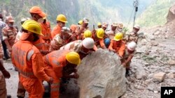 རྒྱ་གར་གྱི་ཉེན་སྐྱོབ་པ་ཚོས་རླངས་འཁོར་གཅིག་ས་འོག་ཏུ་མནན་ནས་གང་དུ་ཡོད་པ་ཏག་ཏག་ཅིག་ཤེས་ཀྱི་མི་འདུག དེར་བརྟེན་ང་ཚོས་ཉེན་སྐྱོབ་ཀྱི་ལས་དོན་ཡང་འཕྲལ་དུ་བསྒྲུབ་དཀའ་བ་ཞིག་རེད་ཅེས་བཤད། རྒྱ་གར་གྱི་ཊི་རི་བྷུན་ཉིན་རེའི་ཚགས་པར་ལ་གཟའ་ལྷག་པའི་ཉིན་ས་རུད་བརྒྱབ་སྟེ་བྱིས་པ་ཞིག་དང་བུད་མེད་ལྔ་ཚུད་པའི་མི་༡༠་ཐམ་པ་ས་རྡོའི་འོག་ཏུ་མནན་ནས་འཆི་སྐྱོན་བྱུང་འདུག མི་༡༣་ལ་རྨས་སྐྱོན་ཕོག་ཡོད་པ་དང་མི་༥༠་ཡས་མས་ཤིག་རླངས་འཁོར་ནང་དུ་ས་འོག་ཏུ་མནན་ཡོད་ཤས་ཆེ། རི་ཉིལ་ཏེ་རྦབ་རྡོ་སྒྲིལ་ས་ནི་ཁུ་ནུ་རྫོང་ནས་སྤྱི་ལེ་༡༧༠་ཐམ་པའི་མཚམས་ཀྱི་ནེའུ་གྷལ་སཱ་རཱི་ཞེས་པའི་ས་གནས་དེ་རེད། ད་ལོ་རྒྱ་གར་གྱི་ཧི་མ་ཅལ་མངའ་སྡེར་སྔར་དང་མ་འདྲ་བར་ཆར་དུས་སྔོན་ལ་ཚུགས་པ་དང་ཆར་ཤུགས་ཀྱང་ཆེན་པོ་འབབ་ཀྱི་འདུག་ཅེས་གནས་ཚུལ་ཞིབ་ཕྲ་ཞིག་སྤེལ་འདུག
