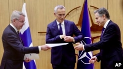 སྔ་ལོ་ཨུ་རུ་སུའི་སྲིད་འཛིན་ཕུ་ཊིན་གྱིས་ཡུཀ་རེན་ནུབ་ཆིངས་ཁོངས་སུ་ཞུགས་རྩིས་བྱེད་ཀྱི་འདུག གལ་སྲིད་ཡུཀ་རེན་དངོས་སུ་ནུབ་ཆིངས་ཁོངས་སུ་ཞུགས་ན་ནུབ་ཕྱོགས་ཀྱི་དམག་དོན་སྒྲིག་འཛུགས་དེ་ཨུ་རུ་སུའི་སྒོ་འགྲམ་བར་དུ་རྒྱ་བསྐྱེད་ནས་སླེབས་ས་རེད་ཅེས་བཙན་འཛུལ་དམག་འཁྲུག་བསླངས། ཉེ་ཆར་ཏུར་ཀིའི་རྒྱལ་ཡོངས་གྲོས་ཚོགས་ཀྱིས་ཧྥིན་ལན་ཌི་ནུབ་ཆིངས་ཁོངས་སུ་ཞུགས་ཆོག་པའི་མཐའ་མའི་ཆོག་མཆན་བཀོད། ཨ་མི་རི་ཀ་ནུབ་ཆིངས་སྒྲིག་འཛུགས་ཀྱི་འགན་སྲུང་བ་ཡིན་པས་གཟའ་མིག་དམར་ཉིན་ཏུར་ཀིའི་གཞུང་གིས་བྷེལ་ཇེམ་གྱི་རྒྱལ་ས་བྷ་ར་སིལ་སི་གྲོང་ཁྱེར་དུ་བཅའ་སྡོད་ནུབ་ཆིངས་ཀྱི་དབུས་སྤྱི་ཁྱབ་ཁང་དུ་ཨ་རིའི་ཕྱི་སྲིད་དྲུང་ཆེ་བྷ་ལིན་ཁེན་ལ་ཧྥིན་ལན་ཌི་ནུབ་ཆིངས་ཁོངས་སུ་ཞུགས་རྒྱུ་དེར་དགག་བྱ་མེད་པའི་འཁྲོལ་ཡིག་སྤྲད། ནུབ་ཆིངས་སྒྲིག་འཛུགས་ཀྱི་སྤྱི་ཁྱབ་དྲུང་ཆེས་ཧྥིན་ལན་ཌི་དངོས་སུ་ནུབ་ཆིངས་སྒྲིག་འཛུགས་ཀྱི་དབུས་སྤྱི་ཁྱབ་ཁང་དུ་གདན་འདྲེན་ཞུས་ནས་དམག་དོན་སྒྲིག་འཛུགས་དེའི་ཚོགས་འཐུས་རྒྱལ་ཁབ་༣༡་པར་ངོས་འཛིན་ཐོབ། སྤྱི་ཁྱབ་དྲུང་ཆེ་སི་ཊོན་ཊེན་བྷག་གིས་ང་ཚོས་ནུབ་ཆིངས་ཀྱི་དབུས་སྤྱི་ཁྱབ་ཁང་དུ་ཧྥིན་ཌིའི་རྒྱལ་དར་བསྒྲེང་རྒྱུ་དང་ཧྥིན་ལན་ཌིའི་བདེ་འཇགས་སྲུང་སྐྱོབ་ལ་དགེ་མཚན་ཆེ་བའི་ཉིན་མོ་ཞིག་རེད་ཅེས་གཏམ་བཤད་བྱས་པའི་གནས་ཚུལ་ཐོན།།