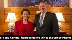 ༄༅།། དེང་སྐབས་སྤྱི་ཚོགས་དྲྭ་ལམ་དུ་ཨ་མི་རི་ཀའི་ཕྱི་སྲིད་དྲུང་ཆེ་ཟུར་པ་མེཀ་ཕོམ་ཕིའོ་ཡིས་ཐེ་ཝན་གྱི་ཐོན་སྐྱེད་ཤིང་ཏོག་ཅིག་བཞེས་ནས་བཞུགས་པའི་འདྲ་པར་ཞིག་ཐོན་ཡོད་ཅིང་། འདྲ་པར་འདིས་ཁོང་གིས་ཐེ་ཝན་ལ་རྒྱབ་སྐྱོར་གནང་གི་ཡོད་པ་མཚོན་ཐུབ་པར་མ་ཟད། མེཀ་ཕོམ་ཕིའོ་ལོ་མཇུག་འདིར་ཐེ་ཝན་ལ་འཚམས་འདྲིར་ཕེབས་རྒྱུ་ཡིན་པའི་གནས་ཚུལ་སྤེལ་གྱི་ཡོད་པའི་སྐོར། འདི་ག་ཨ་རིའི་རླུང་འཕྲིན་ཁང་གི་གསར་འགོད་པས་སྤེལ་བའི་གནས་ཚུལ་དེ་བདེ་ཆེན་རྒྱ་མཚོ་ཕབ་སྒྱུར་དང་སྙན་སྒྲོན་ཞུ་ཡི་རེད།།