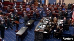 ༄༅།། ཨ་རིའི་གྲོས་ཚོགས་འོག་མས་སྲིད་འཛིན་ཟུར་པ་ཌོ་ནལ་ཊམ་གྱིས་རང་གི་རྒྱབ་སྐྱོར་བ་ཚོར་ངན་སྐུལ་བྱས་ནས་གྱེན་ལོག་བྱེད་དུ་བཅུག་པའི་ནག་ཉེས་བཙུགས། ད་ལྟ་ཨ་རིའི་གྲོས་ཚོགས་གོང་མས་སྲིད་འཛིན་ཟུར་པ་ཌོ་ནལ་ཊམ་ལ་ངན་སྐུལ་གྱེན་ལོག་གི་ནག་ཉེས་ཡོད་མེད་ཁྲིམས་བཤེར་བྱ་རྒྱུ། མ་འོངས་པར་ཌོ་ནལ་ཊམ་ཨ་མི་རི་ཀའི་ཆབ་སྲིད་ལ་ནམ་ཡང་ཞུགས་མི་ཆོག་པ་དང་གཞུང་གི་གོ་གནས་འཛིན་མི་ཆོག་པའི་ཁྲིམས་གཅོད་བྱ་དགོས་ཚེ། ཨ་རིའི་གྲོས་ཚོགས་གོང་མའི་འཐུས་མི་༦༧་གྱིས་ཌོ་ནལ་ཊམ་ལ་ངན་སྐུལ་གྱེན་ལོག་གི་ནག་ཉེས་འདུག་ཅེས་འོས་ཤོག་འཕེན་དགོས། ཡིན་ནའང་གྲོས་ཚོགས་གོང་མའི་སྤྱི་མཐུན་ཚོགས་པའི་འཐུས་མི་མང་ཆེ་བས་ཌོ་ནལ་ཊམ་ལ་སྔར་བཞིན་རྒྱབ་སྐྱོར་བྱས་ནས་ཁྲིམས་གཅོད་ཀྱི་འོས་ཤོག་འཕེན་རྒྱུའི་རྟགས་མཚན་བྲལ། དཔེར་ན་གཟའ་མིག་དམར་ཉིན་སྤྱི་མཐུན་ཚོགས་པའི་གྲོས་ཚོགས་གོང་མའི་འཐུས་མི་༤༥་ཡིས་ཌོ་ནལ་ཊམ་ལ་ཉེས་འཛུགས་ཀྱི་ཁ་མཆུ་གཉིས་པ་དེར་གྲོས་ཚོགས་གོང་མས་བདག་པོ་རྒྱག་མི་དགོས་ཞེས་འོས་ཤོག་འཕངས། སྤྱི་མཐུན་ཚོགས་པའི་གྲོས་ཚོགས་གོང་མའི་འཐུས་མི་ལྔས་ཌོ་ནལ་ཊམ་ལ་ཉེས་འཛུགས་ཐེངས་གཉིས་པ་བྱུང་བའི་ཁ་མཆུ་དེར་ཁྲིམས་བཤེར་བྱ་དགོས་པའི་འོས་ཤོག་འཕངས། ཨ་རིའི་གྲོས་ཚོགས་གོང་མས་ཁྲིམས་བཤེར་བྱས་ཀྱང་མཐའ་མཇུག་འཐུས་མི་༥༥་ཡིས་ཌོ་ནལ་ཊམ་ལ་ངན་སྐུལ་གྱེན་ལོག་གི་ནག་ཉེས་ཡོད་པའི་འོས་ཤོག་འཕེན་རྒྱུ། འཐུས་མི་༤༥་ཡིས་ཌོ་ནལ་ཊམ་ལ་ངན་སྐུལ་གྱེན་ལོག་གི་ནག་ཉེས་མི་འདུག་ཅེས་འོས་ཤོག་འཕངས་ནས་ཁྲིམས་ལ་སྦྱོར་ཐུབ་རྒྱུ་ཁག་པོ་ཡིན་པའི་གནས་ཚུལ་ཐོན་འདུག