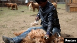 ༄༅།། སོག་ཡུལ་གྱི་ནོར་གནག་གི་ཁུ་ལུ་དང་ར་ཁུལ་གྱིས་བཏགས་པའི་ཁ་དཀྲི་དང་གཟན་གོས། ཞྭ་མོ་དང་ཀམ་པ་ལི་སོགས་ནི་འཛམ་གླིང་གི་ཁྲོམ་རའི་ནང་དུ་རིན་གོང་ཧ་ཅང་ཆེན་པོ་བྱས་ནས་འཚོང་གི་ཡོད་ཅིང་། དུད་འགྲོའི་ཐོབ་ཐང་དང་ཁོར་ཡུག་སྲུང་སྐྱོབ་ཚོགས་པ་ཁག་གིས་རིན་གོང་ཆེ་བའི་དངོས་ཟོག་དེ་དག་གི་དོན་དུ་ཕྱུགས་ཟོག་གིས་ཡ་ང་བའི་གདུག་རྩུབ་མྱོང་བ་དང་ཁོར་ཡུག་ལ་གཏོར་བཤིག་ཚབས་ཆེན་འཕོག་གི་འདུག་ཅེས་ངོ་རྒོལ་བྱེད་ཀྱི་ཡོད་པའི་གནས་ཚུལ་ཐོན་འདུག ཕྱི་ཟླ་༨་པའི་ཚེས་༡༡་ཉིན་སི་ཨེན་ཨེན་གསར་འགྱུར་ལས་ཁང་གིས་གནས་ཚུལ་སྤེལ་བ་ལྟར་ན། སོག་ཡུལ་གྱི་རྩྭ་ཐང་ནི་མུ་མཐའ་མེད་པ་དང་དགུན་གྱི་དུས་སུ་གྲང་ངར་ཆེ་བས་རི་ལུང་ཐམས་ཅད་ཁ་བས་བཀླུབས། དཔྱིད་ཀྱི་དུས་སུ་ཁ་བ་ཞུ་སྟེ་བྱེ་རླུང་ལྡང་ཡང་སོག་པོའི་འབྲོག་པ་ཚོ་ལས་བྲེལ་ཆེ་བའི་དུས་སྐབས་ཤིག་ཡིན་འདུག བྷ་ཡར་ཐུ་རེན་ཞེས་པའི་སོག་མོ་ཞིག་གིས་ང་ཚོས་དཔྱད་ཀར་ཁུ་ལུ་འབལ་དགོས་པས་ལས་བྲེལ་ཆེ། ང་ཚོ་ཉི་མ་ཤར་བ་དང་ལངས་ནས་ཁུ་ལུ་འབལ་གྱི་ཡོད། དཔྱིད་ཀ་ནི་ཁུ་ལུ་བསྡུ་བའི་དུས་སྐབས་ཡིན་ཞེས་བཀྲལ།།