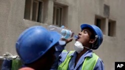 ཕྱི་ཟླ་༡༡་པའི་ཚེས་༡༧་ཉིན་ནེའུ་ཡོཀ་དུས་བབ་ཚགས་པར་ལ་གནས་ཚུལ་ཐོན་པ་ལྟར་ན། དཀྱིལ་ཤར་ས་ཁུལ་གྱི་རྒྱལ་ཁབ་ཁ་ཊར་གཞུང་གིས་འཛམ་གླིང་རྐང་རྩེད་ལྒང་ལིའི་རྩེད་ཐང་འཛུགས་སྐྲུན་བྱེད་པར་༢༠༡༥་གཅིག་པུར་ཕྱི་རྒྱལ་བ་༢༠༤༠༠༠་ལ་ལས་ཀའི་ཆོག་མཆན་སྤྲད། ལོ་དེར་རྒྱ་གར་བའི་ལས་མི་མང་ཤོས་བྱུང་ཡོད་པ་དེའི་འཕྲོ་རྣམས་བལ་པོ་ཡིན་པར་མ་ཟད། ༡༩༩༤་ནས་བལ་ཡུལ་གཞུང་གིས་ཐོ་འགོད་བྱས་པའི་རྗེས་སུ་རྒྱལ་ཁབ་དེའི་མི་འབོར་གྱི་བརྒྱ་ཆ་༢༥་ཕྱི་རྒྱལ་ལ་ལས་ཀ་འཚོལ་དུ་ཕྱིན་འདུག་ཅེས་གསལ། ཕྱི་ཟླ་༡༡་པའི་ཚེས་༢༠་ཉིན་ཁ་ཊར་རྒྱལ་ཁབ་ཏུ་འཛམ་གླིང་གི་རྐང་རྩེད་ལྒང་ལིའི་འགྲན་སྡུར་དངོས་སུ་འགོ་ཚུགས། བལ་པོ་ཤཱམ་བྷུ་ཅོ་དྷ་རི་ཞེས་པ་ནི་རྐང་རྩེ་ལྒང་ལིའི་འགྲན་སྡུར་འཚོགས་ཡུལ་རྩེད་ཐང་དེ་འཛུགས་སྐྲུན་བྱེད་མཁན་གྲས་ཤིག་ཡིན་པ་དང་ཁོ་པས་ཨ་སྒོར་དུང་ཕྱུར་བཅུའི་རྩེད་ཐང་རེད་ཅེས་ངག་ནས་ཐལ། ད་ལྟ་ཁོ་པ་ལོ་༤༤་ཡིན་པ་དང་ཅོ་དྷ་རི་ལྟ་བུའི་ཕྱི་རྒྱལ་གྱི་ངལ་རྩོལ་བ་མེད་པར་ཁ་ཊར་གཞུང་གིས་འཛམ་གླིང་ཡོངས་སུ་ངོམ་སོ་བྱེད་ཆོག་པའི་རྩེད་ཐང་དེ་རྣམས་གྲུབ་ཐབས་བྲལ། རྒྱ་གར་དང་བལ་ཡུལ་སོགས་ཀྱི་ཕྱི་མི་ངལ་རྩལ་བ་རྣམས་ཏ་ཟིག་མཚོ་ཁུག་གི་འབྱོར་ལྡན་རྒྱལ་ཁབ་ཁག་གི་ཚོང་ལས་དང་སྙིང་རྗེ་མེད་པའི་མ་རྩ་རིང་ལུགས་པ་རྣམས་ཀྱི་ཟུངས་ཤུགས་སུ་གྱུར། ཕྱི་རྒྱལ་གྱི་ངལ་རྩོལ་བ་མེད་པར་ཁ་ཊར་གཞུང་གིས་ཨ་སྒོར་ཐེར་འབུམ་༢༢༠་ཐམ་པའི་འཛམ་གླིང་གི་རྐང་རྩེད་ལྒང་ལིའི་རྩེད་ཐང་དེ་རྣམས་ནམ་ཡང་འཛུགས་སྐྲུན་བྱེད་མི་ཐུབ། འདས་པའི་ལོ་བཅུ་ཕྲག་གཅིག་གི་རིང་ཁ་ཊར་གཞུང་གིས་ཕྱི་རྒྱལ་གྱི་ངལ་རྩོལ་བ་ཚོར་བཤུ་གཞོག་དང་སྡུག་ལས་བཀོལ། ངལ་རྩོལ་བ་སྟོང་ཕྲག་མང་པོས་ཚེ་སྲོག་གིས་འགྲོ་གྲོན་བཏང་ནས་རྩེད་ཐང་དེ་རྣམས་ལེགས་གྲུབ་བྱུང་བ་རེད་ཅེས་གནས་ཚུལ་སྤེལ་འདུག