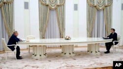 ཨ་རིའི་ཕོ་བྲང་དཀར་པོའི་མཐོ་རིམ་ལས་སྣེ་གསུམ་གྱིས་སྲིད་འཛིན་མེཀ་རོན་རྒྱ་ནག་ལ་ཕེབས་པ་དང་ང་ཚོས་འགག་གྲོལ་ཆེན་པོ་ཞིག་འབྱུང་རྒྱུའི་རེ་ལྟོས་འཆང་གི་མེད། ཞིས་ཅིན་ཕིང་གིས་སྲིད་འཛིན་མེཀ་རེན་གྱི་འབོད་སྐུལ་ལྟར་ཨུ་རུ་སུར་གནོན་ཤུགས་སྤྲོད་རྒྱུ་དང་ཞི་བདེའི་རྒྱ་མཚོའི་མངའ་ཁུལ་དུ་བཙན་དྲག་སྐུལ་བཞིན་པ་མཚམས་འཇོག་བྱེད་མི་སྲིད་པར་སྙམ། ལོ་གཅི་གི་སྔོན་དེར་ཕུ་ཊིན་གྱིས་ཡུཀ་རེན་ལ་བཙན་འཛུལ་མ་བྱས་པའི་སྔ་ནུབ་ཏུ་ཧྥ་རན་སིའི་སྲིད་འཛིན་གྱིས་དམག་འཁྲུག་འགོག་ཐབས་དང་རང་ཉིད་ཞི་བདེ་སྐྲུན་པ་པོ་ཞིག་ལ་འགྱུར་དུ་འཇུག་རྒྱུའི་འབད་བརྩོན་བྱས་པ་རེད། སྲིད་འཛིན་མེཀ་རོན་གྱི་འབད་བརྩོན་དེར་གྲུབ་འབྲས་ཐོན་མེད་པས་ཐེངས་འདིའི་འཚམས་འདྲི་ཡང་ཕུ་ཊིན་ལ་བཤོལ་བཏབ་པ་ལྟར་དུ་འགྱུར་ཤས་ཆེ། ཧྥ་རན་སིས་རྒྱ་ནག་ལ་འབྲེལ་བ་ཡར་རྒྱས་གཏོང་གི་ཡོད་པར་ཨ་མི་རི་ཀར་བསམ་འཆར་ཅི་ཡང་མེད། སྲིད་འཛིན་མེཀ་རོན་གྱི་འཚམས་འདྲི་དེར་གྲུབ་འབྲས་ཤིག་སྨིན་རྒྱུའི་སྨོན་འདུན་ཞུ་རྒྱུ་ཡིན་ཞེས་གསལ་བསྒྲགས་སྤེལ། ཨ་རི་དང་ཡུ་རོབ་གཉིས་ཨུ་རུ་སུའི་ཐོག་ཏུ་ལངས་ཕྱོགས་གཅིག་གྱུར་ཡིན་རུང་རྒྱ་ནག་ལ་ལངས་ཕྱོགས་མ་འདྲ་བ་ཞིག་འཛིན་གྱི་ཡོད་པའི་གནས་ཚུལ་ཐོན་འདུག