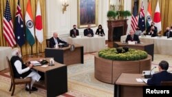 ༄༅།། སྲིད་འཛིན་བྷ་ཌན་གྱིས་གཟའ་པ་སངས་ཉིན་ཕོ་བྲང་དཀར་པོར་ཨོ་གླིང་རྒྱལ་ཁབ་དང་ཉི་ཧོང་། རྒྱ་གར་བཅས་ཀྱི་སྲིད་བློན་རྣམས་གདན་འདྲེན་ཞུས་ཏེ་བཞི་འབྲེལ་རྒྱལ་ཁབ་ཀྱི་ཆེས་མཐོའི་འགོ་ཁྲིད་ཚོའི་ལྷན་འཛོམས་གྲོས་མོལ་ཐེངས་དང་པོ་གནང་ཡོད་ཅིང་། འདི་ནི་རྒྱ་གར་ནས་ཞི་བདེ་རྒྱ་མཚོའི་མངའ་ཁུལ་བར་གྱི་བདེ་འཇགས་སྲུང་སྐྱོབ་དང་ཨ་མི་རི་ཀས་རྒྱ་ནག་ལ་གདོང་ལེན་བྱེད་པར་ཕྱི་སྲིད་ཀྱི་འབད་བརྩོན་ཆེན་པོ་ཞིག་ཏུ་གྱུར་ཡོད་པའི་སྐོར། རྒྱལ་སྤྱིའི་གསར་ལམ་ཁག་ཏུ་ཐོན་པའི་གནས་ཚུལ་རྣམས་བསོད་ནམས་དབྱངས་འཛོམས་ཀྱིས་ཕབ་སྒྱུར་དང་སྙན་སྒྲོན་ཞུ་ཡི་རེད།།
