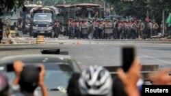 ༄༅། །འབར་མའི་བདེ་འཇགས་དམག་དཔུང་གིས་་མང་གཙོ་དོན་གཉེར་བ་ཚོར་གློ་བུར་སྔོག་བཤེར་དང་རྡུང་རྡེག་གཏོང་གི་ཡོད་པར་ལྟོས་མེད་ཀྱིས་རེས་གཟའ་ཉི་མའི་ཉིན་འབར་མའི་ནང་དྲག་པོའི་དམག་དཔུང་གི་བྱ་སྤྱོད་ལ་ངོ་རྒོལ་བྱེད་མཁན་མི་མང་འཕོོན་ཆེ་འདུ་འཛོམས་བྱས་འདུག་ཅིང་། དེ་རིང་གི་ངོ་རྒོལ་ལས་འགུལ་དེ་ནི་སྤྱི་ཟླ་གཉིས་པའི་་ཚེས་༡་ནས་བཟུང་གི་གཞི་རྒྱ་ཆེ་ཤོས་ཡིན་པ་སོགས་ཀྱི་སྐོར་རྒྱལ་མཚན་ཚེ་རིང་ལགས་ཀྱིས་ཕབ་སྒྱུར་དང་སྙན་སྒྲོན་ཞུ་ཡི་རེད།