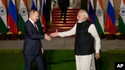 ༄༅།། དེང་སྐབས་རྒྱ་གར་དང་ཨ་མི་རི་ཀའི་མཛད་འབྲེལ་ཡར་རྒྱས་འགྲོ་བཞིན་པའི་སྐབས་འདིར་ཨུ་རུ་སུའི་སྲིད་འཛིན་ཕུ་ཊིན་ལྡི་ལི་གསར་པར་འཚམས་འདྲིར་ཕེབས་ཏེ་རྒྱ་གར་གྱི་སྲིད་བློན་མོ་དྷིའི་ལྷན་དུ་ཕྱོགས་གཉིས་ཀྱི་འགྱུར་བ་མེད་པའི་མཛའ་འབྲེལ་བསྐྱར་ཟློས། རྒྱ་གར་དང་ཨུ་རུ་སུའི་འབྲེལ་བ་ཕྱོགས་གང་ཐད་དུ་ཡར་རྒྱས་གཏོང་རྒྱུའི་གྲོས་མཐུན་༢༨་ལ་མིང་རྟགས་བཀོད་ཡོད་པའི་སྐོར། ཨ་རིའི་རླུང་འཕྲིན་ཁང་གི་གསར་འགོད་པ་ཨན་ཇཱ་ན་པ་སི་རི་ཆས་རྒྱལ་ས་ལྡི་ལི་གསར་པ་ནས་སྤེལ་བའི་གནས་ཚུལ་དེ་ནམ་མཁའ་བསྟན་འཛིན་གྱིས་ཕབ་སྒྱུར་དང་སྙན་སྒྲོན་ཞུ་ཡི་རེད།།
