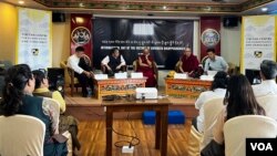 དེ་བཞིན་བོད་གནས་ལྟ་ཞིབ་ཁང་གི་ཉམས་ཞིབ་འགན་འཛིན་དབང་ལྡན་སྐྱབས་ལགས་ཀྱིས་རྒྱ་ནག་གཞུང་གི་བཙོན་འོག་ཏུ་སྡུག་སྦྱོང་མནར་གཅོད་མྱོང་མཁན་བོད་ཀྱི་ཆབ་སྲིད་བཙོན་པ་སྤྱིའི་གནས་སྟངས་གསལ་བཤད་དང་འབྲེལ་ཏེ། རྒྱ་ནག་གི་གསང་བའི་མི་སྣས་འཛིན་བཟུང་བྱས་པའི་ཆབ་སྲིད་བཙོན་པ་ཡིན་པ་ཕལ་ཆེ་བ་གར་སོང་ཆ་མེད་དུ་འགྲོ་གི་ཡོད་པ་མ་ཟད། རྒྱ་ནག་གི་རྩ་ཁྲིམས་དང་བཅའ་ཁྲིམས་སོགས་ནང་སྤྱི་དམངས་ཀྱི་རང་དབང་དང་ཐོབ་ཐང་སོགས་ཁ་གསལ་བཀོད་ཡོད་ཀྱང་རྒྱ་གཞུང་གིས་དེ་དག་ལག་བསྟར་མི་བྱེད་རྒྱུ་ལྟ་ཅི། དེ་ལས་ལྡོག་སྟེ་རྒྱ་གཞུང་རང་གི་ཆབ་སྲིད་ཀྱི་དགོས་མཁོར་དམིགས་ཏེ་རྩ་ཁྲིམས་དང་བཅའ་ཁྲིམས། རྒྱལ་སྤྱིའི་ཁྲིམས་སོགས་གང་རུང་བརྩི་མེད་རྡོག་རོལ་གཏོང་གི་ཡོད་པ་སོགས་འགྲེལ་བརྗོད་གནང་སོང་།