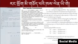 དེ་ཡང་༼ ཡིག་བསྒྱུར་གྱི་ལས་འགུལ་ཆེན་མོ་ ༽ ཞེས་པ་ཡིས་གནས་ཚུལ་སྤེལ་ཏེ་བོད་ཀྱི་གཞས་པ་སྐད་གྲགས་ཅན་ཚེ་དབང་ནོར་བུ་ལགས་ཀྱིས་རང་ལུས་མེར་བསྲེགས་ངང་རྒྱ་ནག་ལ་ངོ་རྒོལ་བྱས་རྗེས་བོད་ལྗོངས་ཞིང་འབྲོག་སློབ་གྲྭ་ཆེན་མོའི་སློབ་མ་ཚོར་༼ རང་སྲོག་མི་གཅོད་པའི་ཁས་ལེན་ ༽ ཞེས་པའི་ཡི་གེ་ཞིག་ལ་མིང་རྟགས་བཀོད་དུ་བཅུག་ནས་རང་སྲོག་གཅོད་པ་ནི་ཐལ་ལྷུང་གི་བྱེད་སྟངས་ཡིན་པ་དང་། རང་སྲོག་གཅོད་རྒྱུའི་བསམ་བློ་འཁོར་ཚེ་ནང་མི་དང་དགེ་རྒན། གྲོགས་པོ་ལ་འབྲེལ་བ་བྱེད་ངེས་ཞེས་འབྲེལ་གཏུག་ཨང་གྲངས་སོགས་མཁོ་སྤྲོད་བྱེད་དགོས་བྱུང་བཞིན་པ་རེད།