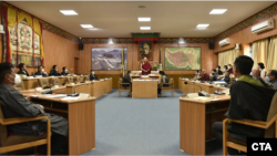 སྐབས་བཅུ་བདུན་པའི་གྲོས་ཚོགས་ཕྱི་ཟླ་༦་པའི་ཚེས་༨་ཉིན་དམ་བཅའ་འབུལ་ཕྱོགས་མི་འདྲ་བ་གཉིས་བྱུང་སྟེ་བོད་མི་མང་སྤྱི་འཐུས་ལྷན་ཚོགས་ཀྱི་གྲུབ་ཆ་མ་ཚང་བར་ཚོགས་མ་ཐུབ་ཅིང་། ཕྱི་ཟླ་༡༠་པའི་ཚེས་༦་ཉིན་༧གོང་ས་སྐྱབས་མགོན་ཆེན་པོ་མཆོག་གིས་བཀའ་ཡིག་ལམ་སྟོན་སྩལ་བ་ལྟར་ཕྱི་ཟླ་༡༠་པའི་ཚེས་༨་ཉིན་འདེམས་ཐོན་སྤྱི་འཐུས་ཚང་མས་སླར་ཡང་དམ་བཅའ་ཕུལ། ཚོགས་གཙོ་མཁན་པོ་བསོད་ནམས་བསྟན་འཕེལ་གྱིས་བཙན་བྱོལ་བོད་མིའི་འོས་བསྡུའི་སྒྲིག་གཞི་དོན་ཚན་༣༨་པའི་འབྲུ་དོན་བཞིན་གྲོས་ཚོགས་འདིའི་ཡུན་ཚད་དམ་བཅའ་ཕུལ་བའི་ཉིན་མོ་ནས་ལོ་ལྔ་ཡིན་པས་༢༠༢༦་ལོའི་ཕྱི་ཟླ་༡༠་པའི་ཚེས་༧ བར་དུ་ཡིན་ཞེས་གསུངས་ཡོད་པ་བཅས་ཀྱི་སྐོར། བཞུགས་སྒར་རྡ་རམ་ས་ལ་ནས་ཨ་རིའི་རླུང་འཕྲིན་ཁང་གི་གསར་འགོད་པ་བསྟན་འཛིན་བཟང་མོ་ལགས་ཀྱིས་བཏང་བའི་གནས་ཚུལ་དེ་གསན་རོགས་གནང་།།