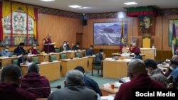 གནད་དོན་དེའི་ཐདགསར་འགོད་པས་ཁོང་རྣམ་པའི་སྐུ་ཚབ་ཚོར་བཞུགས་མོལ་ཚོགས་འདུའི་ཐོག་ནས་ཐབས་ལམ་ཞིག་ཐོན་སྲིད་པས་ཚོགས་འདུ་དེར་བཅར་མི་དགོས་པའི་རྒྱུ་མཚན་ཇི་ཡིན་བཀའ་འདྲི་ཞུ་སྐབས། ཁོང་རྣམ་པའི་སྐུ་ཚབ་སྤྱི་འཐུས་དངོས་གྲུབ་རྡོ་རྗེ་ལགས་ཀྱིས། གཅིག་ནས་ཚོགས་གཙོའི་གྲོས་ཚོགས་དབུ་འབྱེད་ཀྱི་གསུང་བཤད། སྐུ་ཚབ་མཇལ་འཕྲད་སྐབས་ཀྱི་བཀའ་མོལ། ད་ལྟའི་གྲོས་ཚོགས་འཕྲོ་སྐྱོང་མི་ཐུབ་པའི་གནང་བབ་གང་ལ་གཞིགས་ཀྱང་གྲོས་མོལ་ཚོགས་འདུའི་ཐོག་ནས་དཀའ་ངལ་སེལ་ཐུབ་པའི་གཞི་རྩ་མེད་པ་གསུངས་གནང་སོང་།