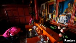 ༄༅།། དབུས་བོད་མིའི་སྒྲིག་འཛུགས་ཀྱི་དྲྭ་ལམ་དུ་ཕྱི་ཟླ་༡༡་པའི་ཚེས་༢༤་ཉིན་གནས་ཚུལ་སྤེལ་དོན་ལྟར་ན། རྒྱ་ནག་གཞུང་གིས་ཉེ་ལམ་མཚོ་སྔོན་ཞིང་ཆེན་གྱི་མཚོ་ལྷོ་ཁུལ་དུ་བོད་པ་ལས་བྱེད་པ་ཚོར་སོ་སོའི་ཁྱིམ་དུ་ཆོས་བྱེད་མི་ཆོག་པ་དང་ཁྱིམ་ཚང་གི་མཆོད་ཁང་རྣམས་བཤིག་དགོས་པའི་བཙན་བཀའ་བཏང་འདུག སྤྱི་བདེ་ལས་བྱེད་པ་སུ་ཞིག་གིས་རང་ཁྱིམ་གྱི་མཆོད་ཁང་མ་བཤིག་ན་ལས་ཁོངས་ནས་ཕྱིར་འབུད་གཏོང་རྒྱུ་དང་གཞི་རིམ་གྱི་ཐོབ་ཐང་རྣམས་འཕྲོག་རྒྱུའི་བཙན་ཁྲིམས་བསྡམས་ནས་ཁུལ་དེའི་བོད་པ་ལས་བྱེད་པ་ཚོས་མི་འདོད་བཞིན་དུ་ཁྱིམ་ཚང་སོ་སོའི་མཆོད་ཁང་རྣམས་བཤིག་དགོས་བྱུང་འདུག དེ་བཞིན་ཕ་མ་དང་གཉེན་ཉེ་སོགས་འདས་གྲོངས་སུ་གྱུར་ཀྱང་འདས་པོ་དེ་ཚོར་གཤིན་ཆོག་སྒྲུབ་མི་ཆོག་པའི་དཀའ་ངལ་འཕྲད་བཞིན་ཡོད་ཅིང་། ད་ལྟའི་ཆར་ཁྲིམས་དེ་ས་གནས་ཡོངས་ལ་ལག་ལེན་བསྟར་གྱི་མེད་ཀྱང་རིམ་བཞིན་རྒྱ་ཁྱབ་ཏུ་ལག་བསྟར་བྱེད་སྲིད་པའི་ཚོད་དཔག་བྱེད་ཀྱི་འདུག་ཅེས་འཁོད་ཡོད་པ་རེད།།