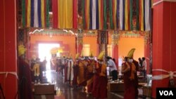 ཐོག་མར་དཀར་ཕྱོགས་སྐྱོང་བའི་ལྷ་སྲུང་ལ་བསང་གསོལ་དང་དར་ཆེན་བཙུགས་པའི་རྗེས་སུ་སྐུ་པར་མཐོང་གྲོལ་རིན་པོ་ཆེ་སྤོས་སྣེས་མདུན་བསུས་ཏེ་གཙུག་ལག་ཁང་གི་བཞུགས་ཁྲིར་མངའ་གསོལ། སྐུ་མགྲོན་རྣམ་པས་མཎྜྲལ་རྟེན་གསུམ་འདེགས་འབུལ་དང་སྐུ་མགྲོན་གཙོ་བོ་སེ་ར་བྱེས་སྨད་ཀྱི་མཁན་རིན་པོ་ཆེ་རྣམ་གཉིས་ཀྱིས་སྣང་གསལ་མར་མེ་ཞལ་འབྱེད། དགེ་འདུན་འདུས་དམངས་ཀྱིས་རྒྱལ་མཆོག་ཡབ་སྲས་ཀྱི་ཞབས་བརྟན་གསོལ་འདེབས་གསུངས་ནས་འཁྲུངས་སྐར་ཀྱི་མངར་ཟས་འདེགས་འབུལ། གདན་ས་བཀྲ་ཤིས་ལྷུན་པོའི་མཁན་པོ་གཟིགས་རྒྱབ་རིན་པོ་ཆེས་གདན་ས་བཀྲ་ཤིས་ལྷུན་པོའི་བླ་སྤྱི་ལྷན་ཁང་དང་པཎ་ཆེན་ཨིར་ཏི་ནི་ཞབས་ཞུ་ལས་དོན་ལྟེ་གནས་ཁང་གཉིས་ཀྱིས་སྤེལ་བའི་འཁྲུངས་སྐར་གྱི་ཡོངས་ཁྱབ་གསུང་འཕྲིན་སྒྲོགས་སྦྱང། གསུང་འཕྲིན་དེར་སྤྱི་ལོ་༡༩༩༥་ལོར་རྒྱ་ནག་གཞུང་གིས་དགུང་ལོ་༦་ལ་ཕེབས་པའི་ཀུན་གཟིགས་པཎ་ཆེན་རིན་པོ་ཆེ་དང་ཡབ་ཡུམ་སྐུ་འཁོར། བྱ་བྲལ་རིན་པོ་ཆེ་བཅས་གློ་བུར་དུ་འཛིན་བཟུང་བཙན་ཁྲིད་བྱས་ཏེ་ལོ་༢༦་གི་རིང་དུ་གར་ཡོད་གནས་སྟངས་ཆ་མེད་དུ་གྱུར་པ། ལྷག་པར་དུ་དེང་སྐབས་རྒྱ་ནག་ནས་ཁྱབ་པའི་ཏོག་དབྱིབས་ནད་ཡམས་ཀྱིས་སྐྱེ་བོ་འབུམ་ཕྲག་མང་པོའི་ཚེ་སྲོག་འཆོར་བཞིན་ཡོད་པའི་གནས་སྟངས་འོག་ཁོང་རྣམ་པའི་སྐུ་ཕྱཱའི་གནས་སྟངས་ལ་དེ་བས་ཀྱང་བློ་ཚབ་ཆེན་པོ་ཡོད། རྒྱ་ནག་གཞུང་གིས་ཁོང་རྣམས་གང་མྱུར་གློད་གྲོལ་བཏང་སྟེ་སྐུ་འཚོ་བཞུགས་ཡོད་པ་འཛམ་གླིང་མི་མང་ལ་སྟོན་དགོས་ཞེས་རེ་བ་བཏོན།།