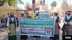 དེ་རིང་ཕྱི་ཟླ་༣་པའི་ཕྱི་ཚེས་༡༢་ཉིན་ལྷོ་ཕྱོགས་སྦེལ་ཀོབ་ས་གནས་བོད་ཀྱི་བུད་མེད་ལྷན་ཚོགས་དང་། ཧུན་སུར་རབ་རྒྱས་གླིང་ཀོལི་གྷལ་དོན་ལྡན་གླིང་བཅས་ཀྱི་བུད་མེད་ལྷན་ཚོགས་ཐུན་མོང་གི་ཚོགས་མི་བརྒྱ་ལྷག་གིས་མངའ་སྡེའི་གྲོང་ཁྱེར་མེ་སོར་དུ་བོད་ཀྱི་བུད་མེད་སྒེར་ལངས་དུས་དྲན་ཐེངས་༦༢ པ་སྲུང་བརྩི་གནང་སོང་། དུས་དྲན་མཛད་སྒོའི་ཐོག་མར་མི་རྣམས་མེ་སོར་རྒྱལ་ཁང་གི་མདུན་ཐང་དུ་འཛོམས་ནས་བོད་ཀྱི་རྒྱལ་གཅེས་དཔའ་བོ་དཔའ་མོ་རྣམས་ཀྱི་རླབས་ཆེན་མཛད་རྗེས་རྗེས་སུ་དྲན་པའི་སྒོོ་ནས་ཁོང་ཚོར་མྱ་ངན་གུས་འདུད་དང་དབུས་བོད་ཀྱི་བུད་མེད་ལྷན་ཚོགས་ཀྱི་ཡོངས་ཁྱབ་གསུང་འཕྲིན་སྒྲོག་སྦྱངས་གནང་བ་དང་། དེ་རྗེས་མེ་སོར་རྒྱལ་ཁང་ནས་རྫོང་དཔོན་ལས་ཁུངས་བར་ལས་འགུལ་བ་རྣམས་ཀྱིས་ཁ་ལ་ཁ་རས་ནག་པོ་བརྒྱབ་པ་དང་། རྒྱ་གཞུང་ལ་ངོ་རྒོལ་གྱི་འབོད་ཚིག་འདྲ་མིན་འཁོད་པའི་འཕྲེད་དར་དང་ཡིག་བྱང་སོགས་བསྣམ་སྟེ་ངག་བཅད་ཞི་བའི་གོམ་བགྲོད་གནང་འདུག། དེ་དང་འབྲེལ་ནས་རྒྱ་གར་གྱི་སྲིད་བློན་དང་། འཛམ་གླིང་མཉམ་འབྲེལ་རྒྱལ་ཚོགས་འགྲོ་བ་མིའི་ཐོབ་ཐང་ལས་ཁུངས་གཉིས་ལ་རྫོང་དཔོན་བརྒྱུད་དོན་ཚན་བཞི་ཅན་གྱི་བོད་དོན་སྙན་ཞུ་ཞིག་ཀྱང་ཕུལ་གནང་ཡོད་པ་རེད།